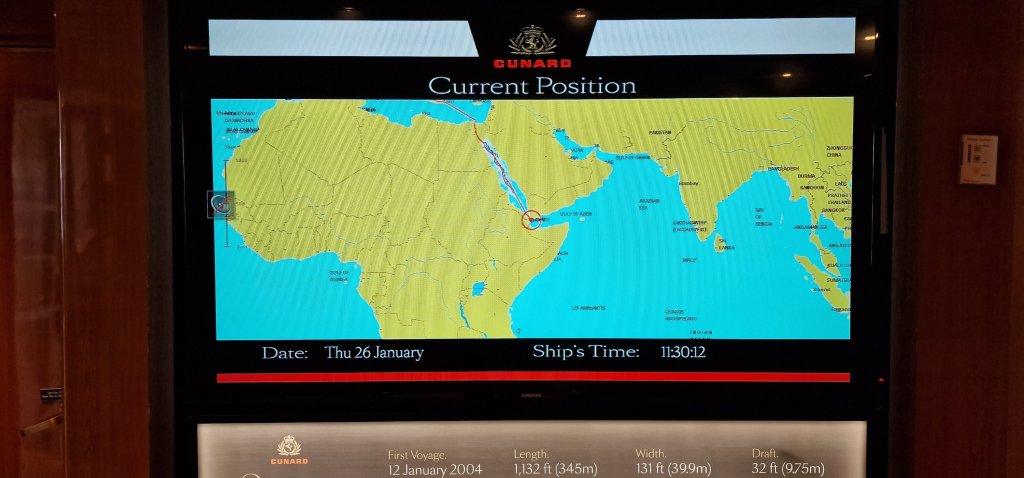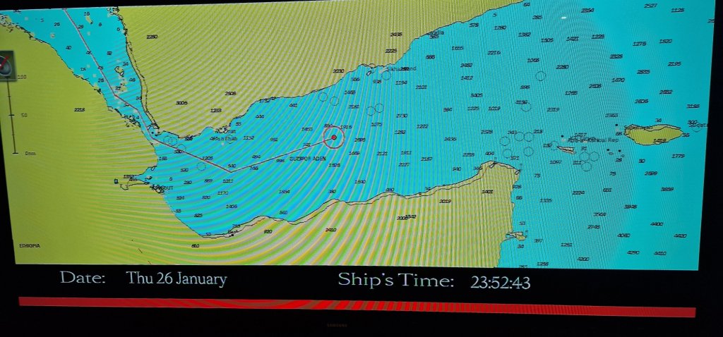 We are now out of the Red Sea into the rougher waters of the Gulf of Aden as we continue in a more easterly direction towards our next port of call, Salalah, the day after tomorrow.