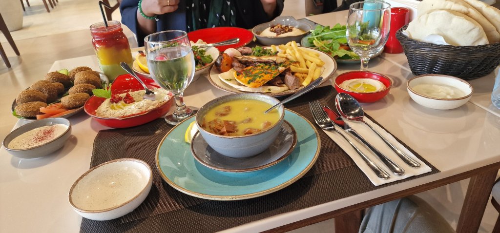 Abeba uses taxis to get around what felt like a sprawling city, each ride being around 15 – 20 minutes. It was time for lunch. Not far from where she lives, a local newly built eatery offered what I understood to be Lebanese cuisine, a banquet offering many choices.