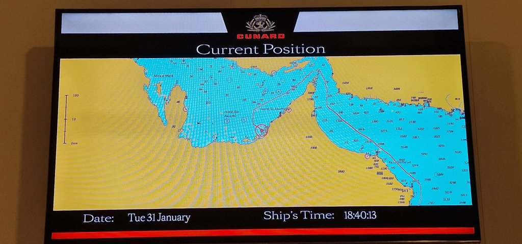 One of those therapeutic breezes cooled the open decks from the heat of the day. Some of the shore experiences became delayed in traffic, allowing an extra hour to enjoy final dusk to nocturnal views of Abu Dhabi visible from the ship.
