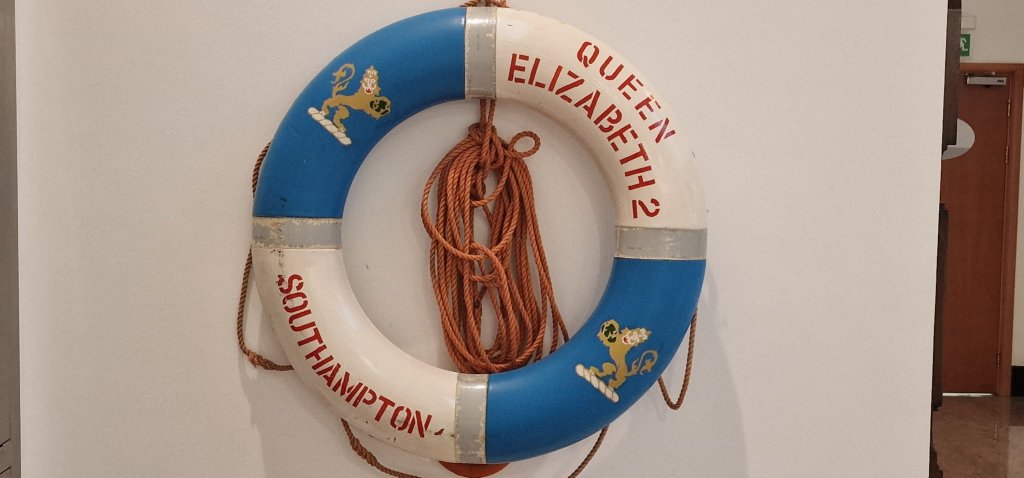 Right now, I am at the Deck 5 entrance where the public enters the ship at ground level. Several people have passed by while I was writing. I think Jo definitely did the right thing exploring as she wished, leaving me to revisit R.M.S. Queen Elizabeth 2. It’s unlikely I shall pass this way again unless I get offered a job as a tour guide.