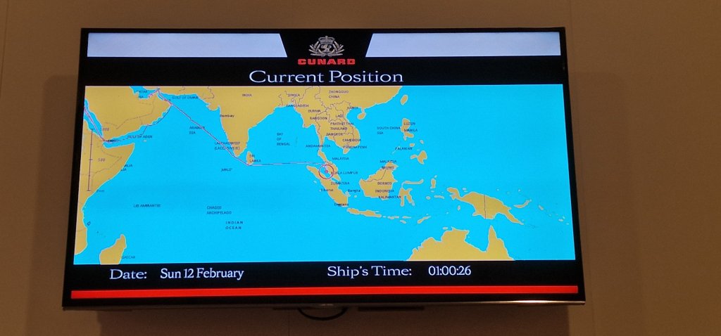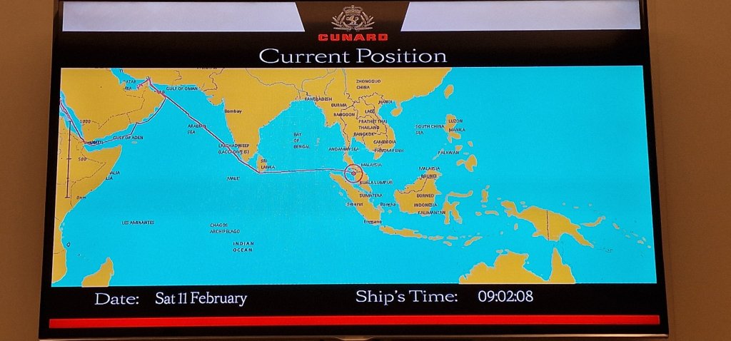 We arrived at Georgetown, Penang, Malaysia, after six sea days from Muscat, Oman. It is hard to believe I am so far from home, with northern Australia now appearing on the maps shown on the stateroom T.V.