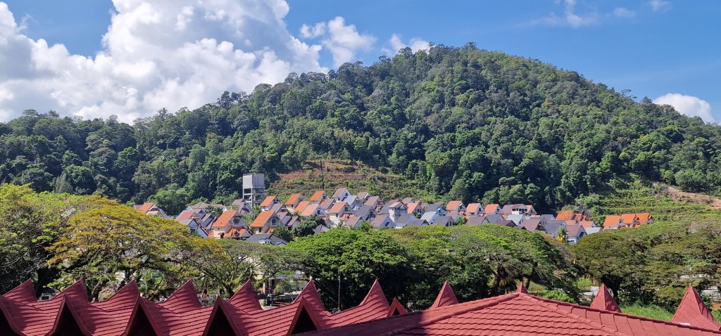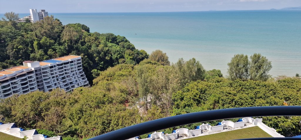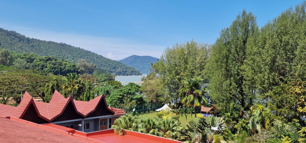 I had offered to take John and Pauline (from Buxton) out to lunch during my brief stay in Penang. Pauline replied, “There will be four of us!.” “I’d better get some Malaysian Ringgits,” I mused to myself. Although I was originally to be met at the cruise terminal, I thought that it might be a better idea for me to make my way to their hotel where I would be welcomed warmly, and my taxi fare taken care of. John was waiting for me at their hotel entrance. I was shown their room, home for, I think, five weeks. Views from their third floor accommodation were spectacular and beautiful.