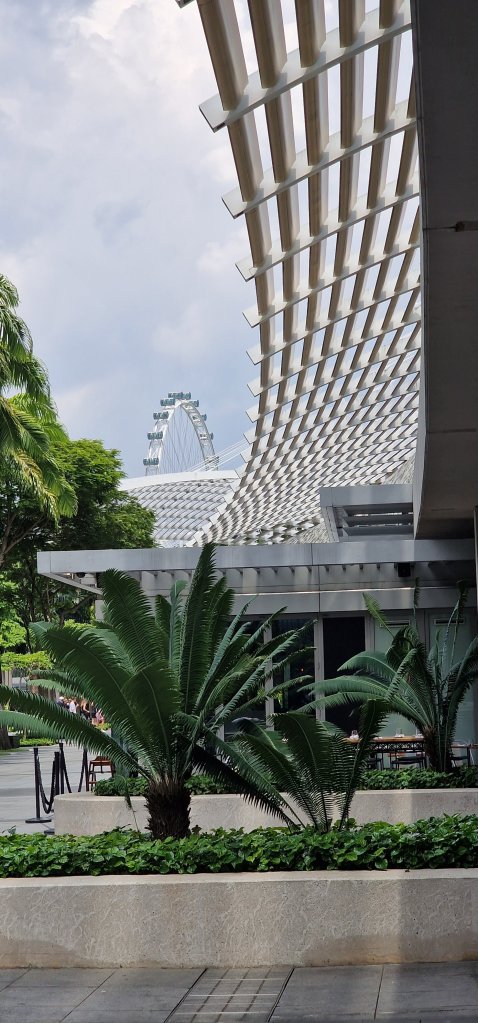 I was alone today, to do exactly as I wished, despite feeling just that bit tempted to join Jo as she explored Little India. My plan was to take the shuttle bus, and then walk as far as the Merlion and Fullerton Hotel, taking photographs as I went along. For Singapore, it was not unbearably hot. It was humid, and I had obtained a couple of small bottles of water to prevent dehydration. I suppose there and back might have been around two, perhaps three miles. I stopped for lunch at a waterside cafe for a French ham and onion pizza type dish. Thankfully, this was definitely intended for one person! I had explored, for a second time, part of the amazing shopping mall where the shuttle bus had brought us to. I made it to the Merlion and the very grand Fullerton Hotel, and other Hotels in the Fullerton area.
