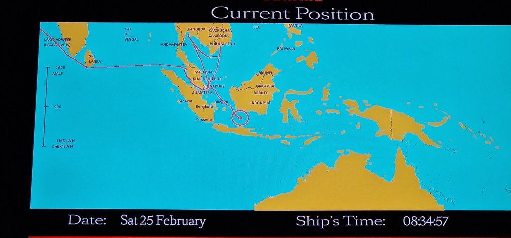 We really are on the other side of the world, as we continue South East through the Java Sea towards our next port of call, Bali. I just about made it for breakfast this morning before going up to the Atlantic Room to see the World Cruise Concierge. She wasn’t there – not her fault; a full crew emergency drill was scheduled for this morning. It sounded all very efficient and even reassuring, but it’s difficult to engage in conversation with continual alarm tests and announcements for around an hour. I did wait for the concierge to return, and the invitations were ready, but there were no envelopes! The restaurant is booked for 1 pm.