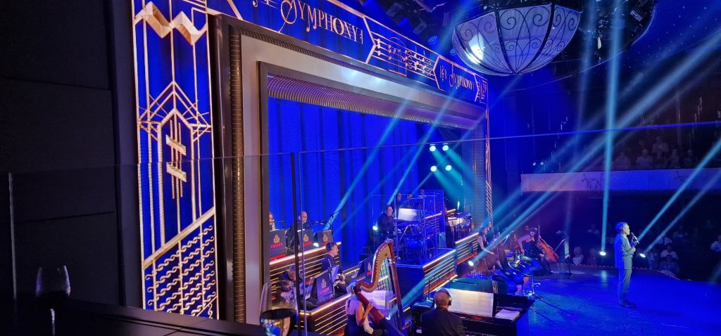 I am intrigued! Who exactly are the Royal Court Symphony Orchestra? Occasionally, they appear, virtually, in a spectacular show called Symphony, featuring almost all the bands and musicians on board QM2 in one spectacular show. We have seen it twice so far and will definitely attend any subsequent showings until eventual disembarkation.