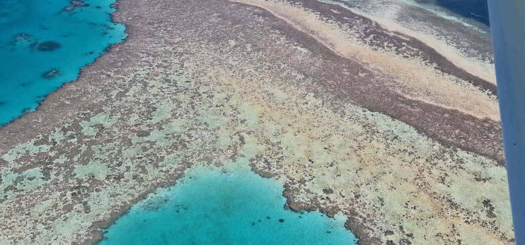 We would fly over various islands that the pilot pointed out, and eventually, the Great Barrier Reef itself.