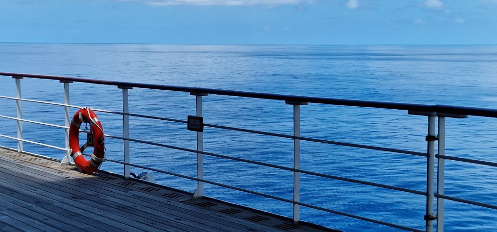 The one thing I like, particularly on Queen Mary 2, is the cavernous Illuminations cinema, forward, accessed on Decks 2 and 3. Death on the Nile was a most enjoyable with Kenneth Brannagh playing a very convincing Hercule Poirot. One forgets one is on board ship when the lights go down. We adjourned to the Royal Court Theatre in time for the evening’s show, after which, because we had eaten early, I had a small plate of something warm at the midnight buffet. I walked an extra lap of the Promenade Deck before going to bed.