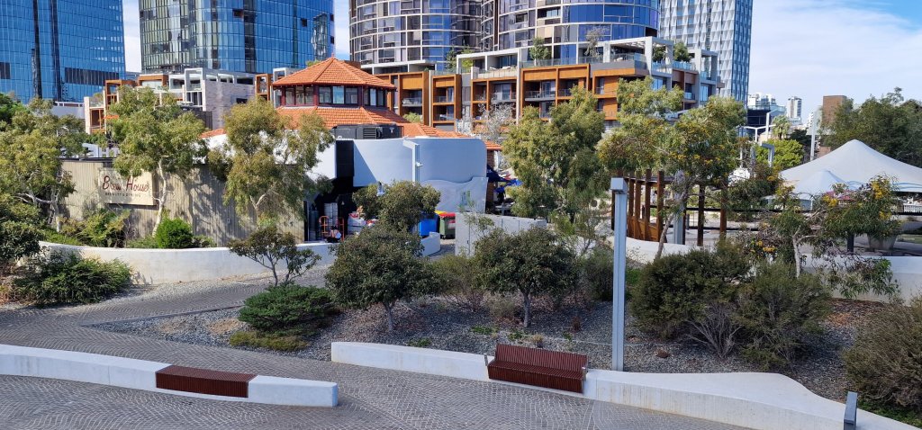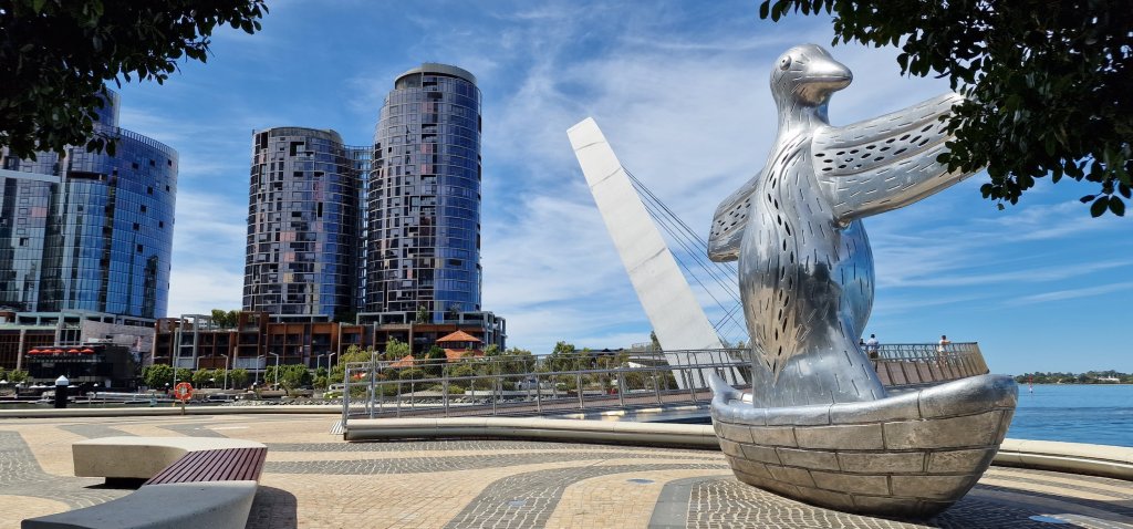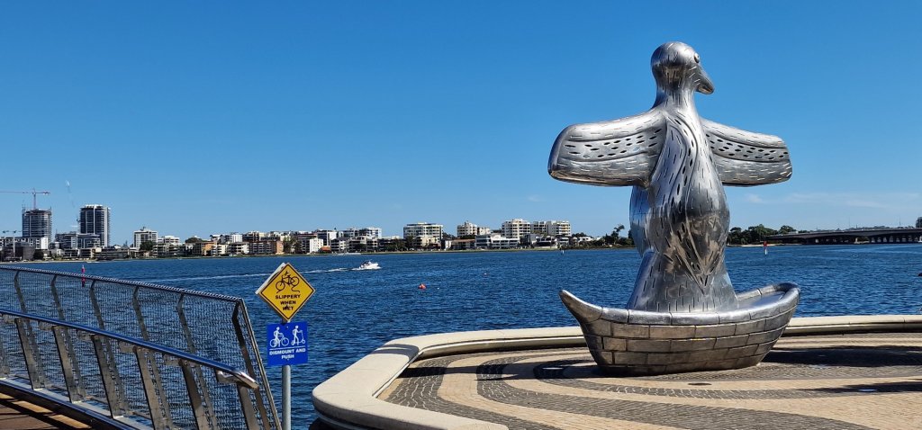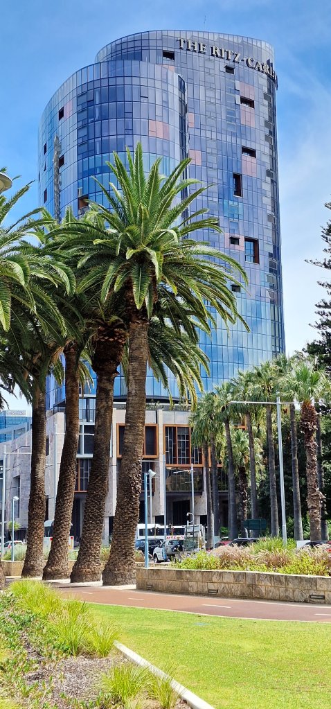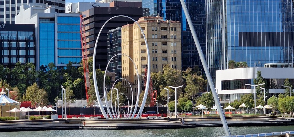 Having had a decent breakfast at the hotel, I only needed an iced coffee before my boat trip on the Swan River which actually is an estuary and is influenced by the tides. The “cruise” suggested opportunities to see wildlife and Swan River dolphins. I did see the osprey, which did not pose long enough for a photograph. The dolphins did not materialise, but the black swans were aplenty as were jelly fish, and other fish. I was delighted to be treated as an Australian senior citizen and enjoy a substantial discount. Jill and Sue from the cruise were among the passengers, and recognised me immediately. And it was Robin and Val in the Island Brew House, Elizabeth Quay eatery, who reassured me about the onboard time tonight.