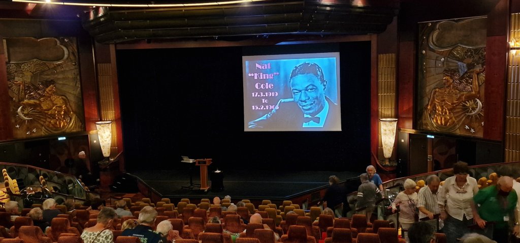 I attended two lectures (now, yesterday), one by professional tennis player, coach, and official, Andrew Jarrett talking about Behind the Scenes at Wimbledon, and a second by Dave Mallinder on the Life and times of Nat King Cole. I am not known for my interest in tennis (or any sport for that matter), but I was fascinated by this extremely well delivered presentation and intend to attend his next talk. I shall probably learn all about Dean Martin later today.
