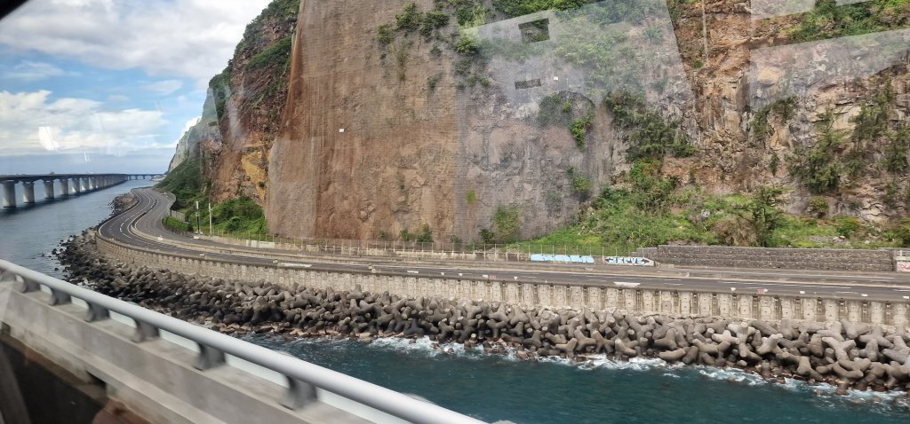 We were allocated a full hour here during which a representative gave a very interesting tour of the “factory” explaining in clear detail the manufacture of vanilla from plant to end product. Of course, we were encouraged to make purchases! The small glass of vanilla flavoured black coffee at the end of the tour was most welcome. On the way, we had driven by but not directly through the capital of La Reunion, St Denis. We used the new road over the sea, which has yet still to be completed. (See illustration above).