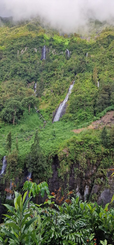 We reboarded the coach and were soon heading into the hills and dramatic mountains, which would characterise La Reunion. Our second “port of call” was the extremely pretty town of Salazie, surrounded on all sides by some of the most spectacular scenery I have laid eyes on. I just wish the journey there had been taken in less of a hurry because there were several fabulous backdrops to behold along the way.