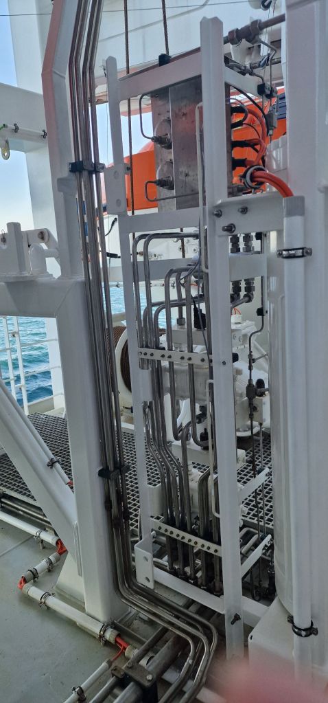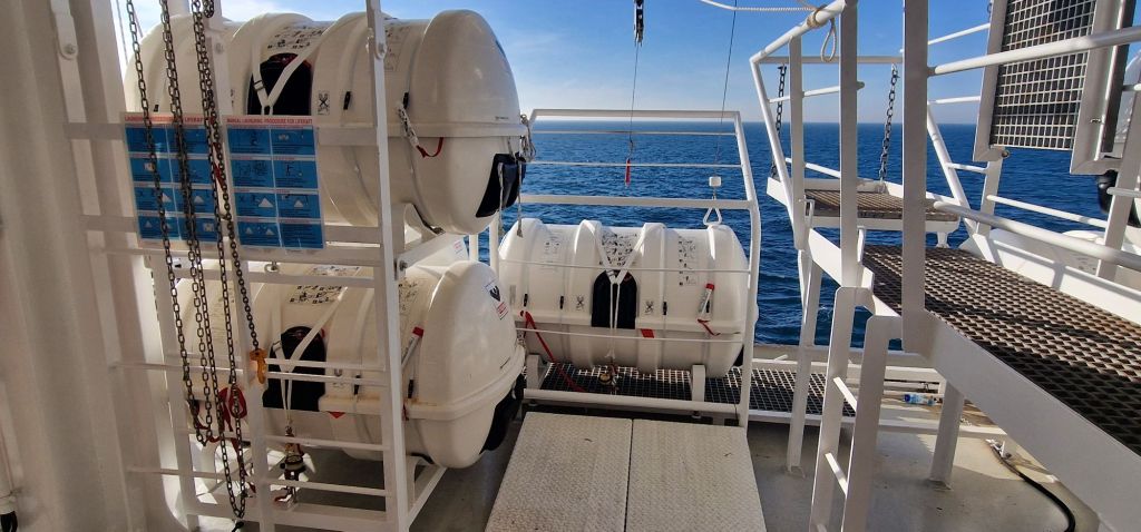 On my walk around the Promenade Deck, right at the aft end, I came across two female personnel watching over a highly polished box draped with a Red Ensign. It seems that a scattering of ashes at sea was about to occur, and the area was soon blocked off.