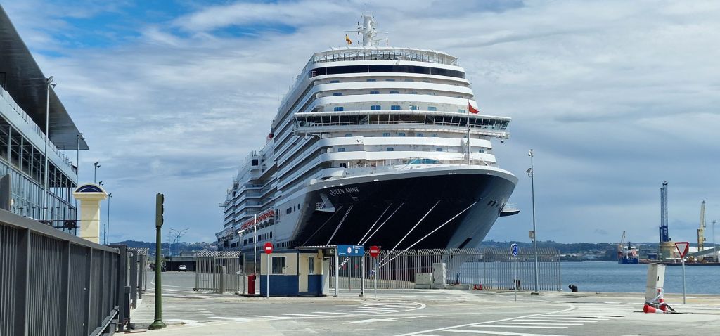 There will be no fireworks tonight as we are expected to set sail around 6 pm. Queen Anne was joined at the Mayflower Terminal by Royal Caribbean’s massive Anthem of the Seas.