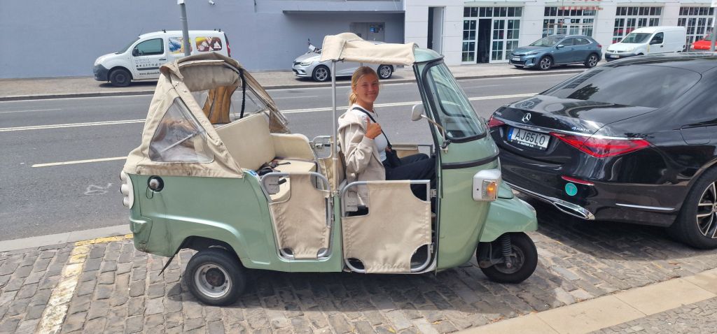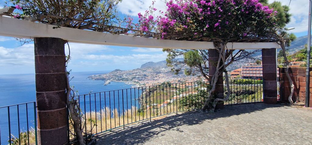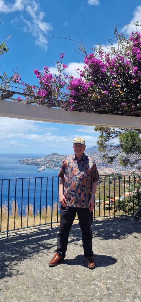 Normally, I would have walked the twenty minutes into the attractive capital city, Funchal. Energy, however, was not forthcoming. The late morning was hot. I needed to acquire medication for (among other things) a sore throat and voice loss. I sat on a wall. Behind me, the harbour accommodating our ship and a smaller vessel. In front, a main road with a spectacular rugged backdrop. I was approached by a tuk-tuk operator, offering me various sightseeing packages.