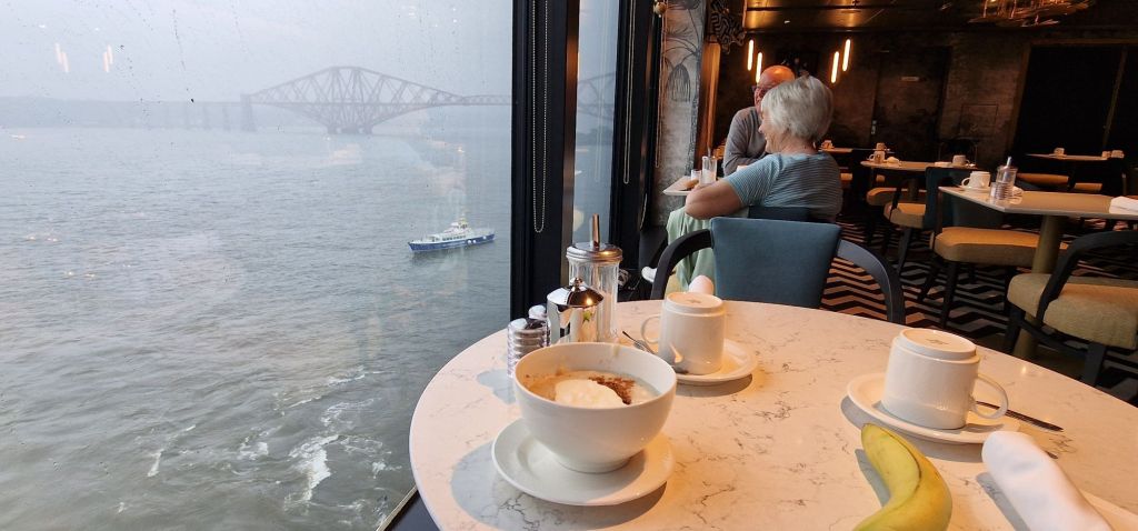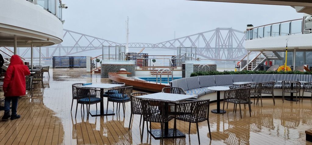 I was thrilled to wake up this morning, at around 7 o’clock, to see part of the Forth Rail Bridge through my stateroom balcony doors. I have made no specific plans for today. Although the tender service will be running soon, I doubt I will make it to church! For some reason, the idea of singing hymns and hearing a booming word of God in a Scottish Presbyterian kirk appeals!