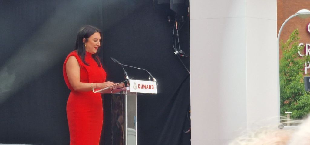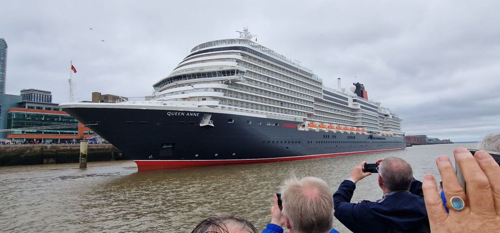 Nobody knew who had been chosen to name Queen Anne. This had been a closely guarded secret right up to the very moment the button would be pressed to release the balthazar of champagne against the bow of the ship. Speculation suggested Princess Anne (for obvious reasons) as well as Sir Paul McCartney. Actually and unexpectedly, it was the City of Liverpool and its population who became the godparents. I detected a bit of an oh s*☆t moment as the crowds cheer seemed muted and confused.