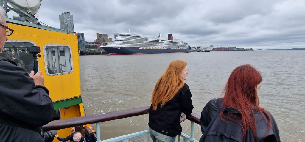 Even ‘though I had booked my place at the official naming ceremony, a privilege extended to all passengers on board Queen Anne, I still had a choice, stay on board or stand for hours on end at the naming ceremony in the seatless area set aside specially, a prospect that I had grave misgivings about. At first, I was reluctant to leave the comfort of the ship, recalling that I have always found the prospect of exploration a little daunting to begin with. The big event wasn’t until 4 p.m., but it occurred to me to take the Mersey Ferry to Seaforth on a round trip, which made a point of providing every photographic opportunity. Being 75 years of age, I was eligible for a small discount, and the 50-minute return crossing was extremely well worth the “investment.”