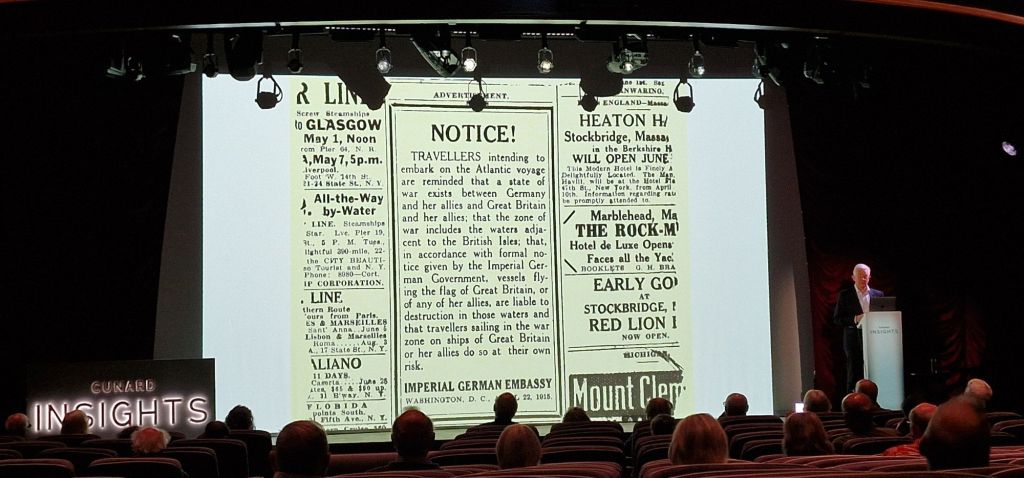 Alistair Greener’s lecture, “The Triumph and Tragedy of the Lusitania was comprehensive, enlightening, and very interesting. I hadn’t really appreciated that in Edwardian times, Cunard was struggling against fierce competition from elsewhere, including the Germans as well as White Star. and that both express liners Lusitania and Mauretania would put Cunard back to the forefront of passenger ships for years to come.