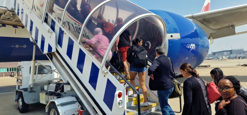 I felt that life was too short for lugging suitcases a quarter of a mile to Hammersmith tube ststion and getting snarled up with commuters. I was warned that going by car would take far longer. Uber, in fact, provided an excellent service, and I was queuing at check-in within 25 minutes. (The journey by Tube from Hammersmith is 35 minutes). I requested a seat with an escape route to the bathroom! I was recommended two lounges in which to await boarding. “Lounges?” I queried. “You’re in Business Class,” I was informed in quite a deadpan but professional manner. I tried to be equally deadpan, not believing this incredible stroke of luck. I could catch up on some lost sleep. And I did! The seat morphed into a flat bed. It took a while to weigh up the different gadgets and facilities. To begin with. I enjoyed views through the window. But once at 35 000 feet, there’s not much to see. Lunch and afternoon tea were served near the start and end of the flight. In between, the cabin lights were turned off to simulate darkness. It worked, and I slept.