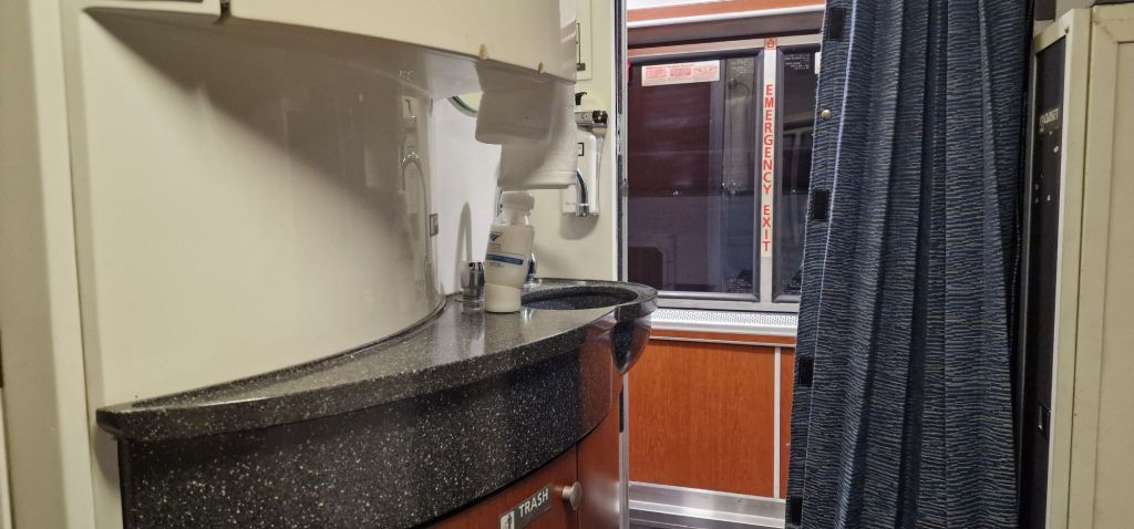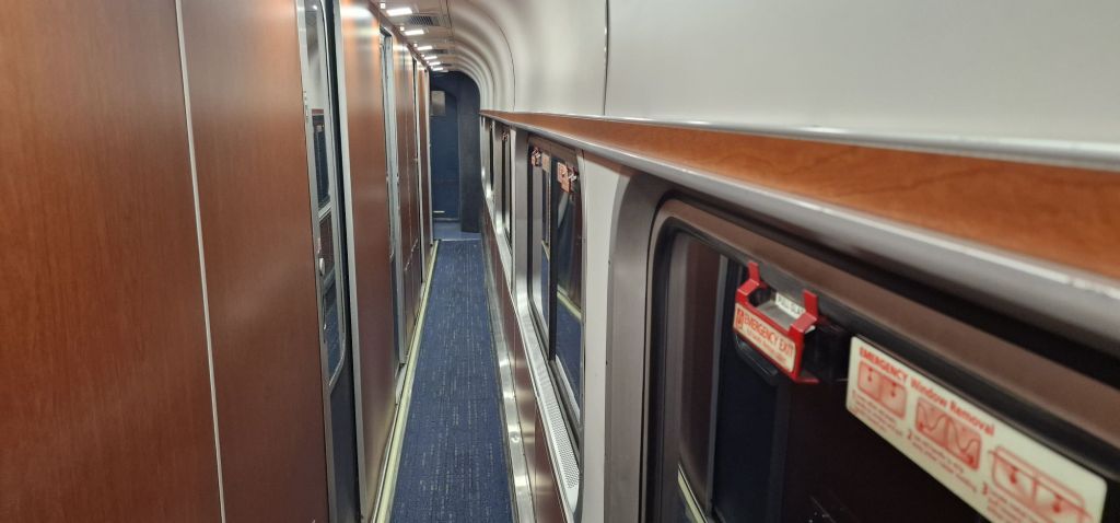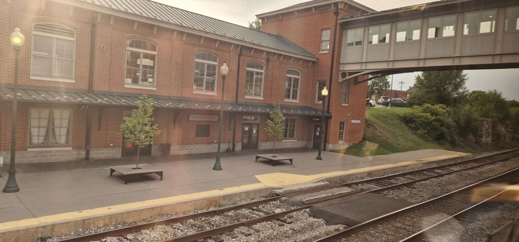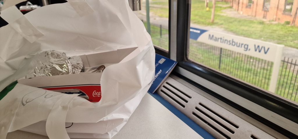 Now that I am settled in, I am very content, being once again, on an Amtrak long-distance train. Local commuter trains were let go (on time) in front of our train, reducing our average speed by around 15 m.p.h. 2025 hrs. We are now awaiting clearance through freight areas (which I don’t quite understand). Cumberland? I do appreciate that freight still has priority over passenger services, and that has always been a feature of North American railroads.