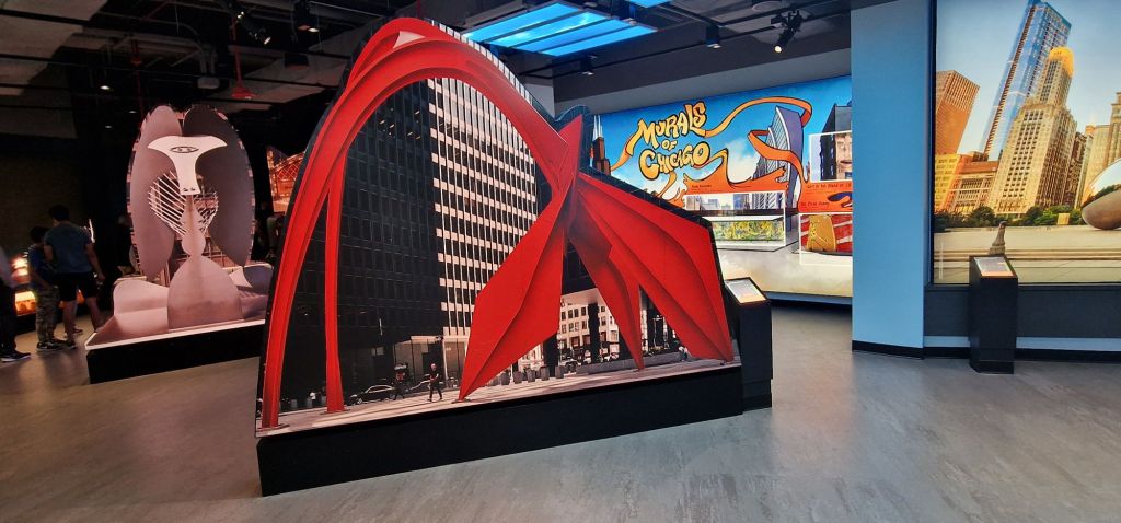 The author of the blogs reprised his role as a DJ in Chicago! Back in the day. my hair was darker and more plenteous.“Red Flamingo” by Alexander Calder. See previous blog where the original sculpture is situated in the FEDERAL PLAZA and can be seen clearly from the Big Bus tour between stops 2 and 3.