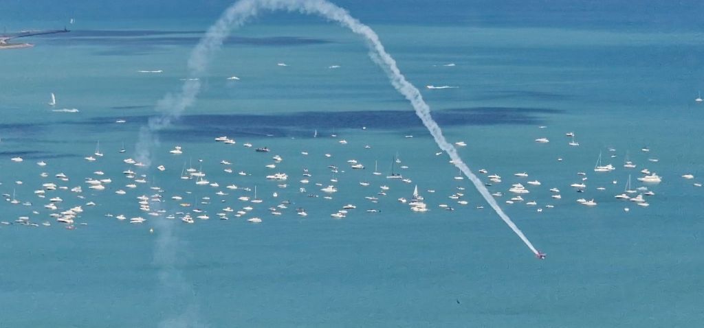 Going up city towers is not cheap! Today’s extravagance set me back 50 Bucks, including the Tilt experience from which taking photographs is banned! A dodgy photo of me is just not worth the extra 30 or so Bucks. Considering the Air and Water Show is on, the crowds were not too severe, and it was possible to see displays at a distance.