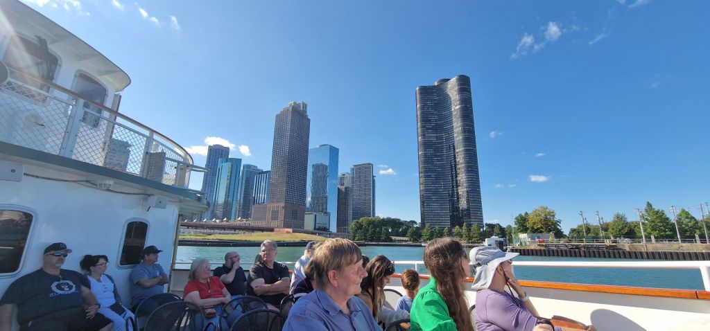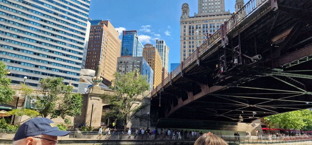 I walked back the same way, along N.Michigan Avenue, ascertaining that I wouldn’t have time to walk in the other direction to the Air and Water Show. I grabbed a diabetic friendly cheese and ham waffle before the same Architects’ river cruise that I took in 2022. Little was familiar even after that short time.
