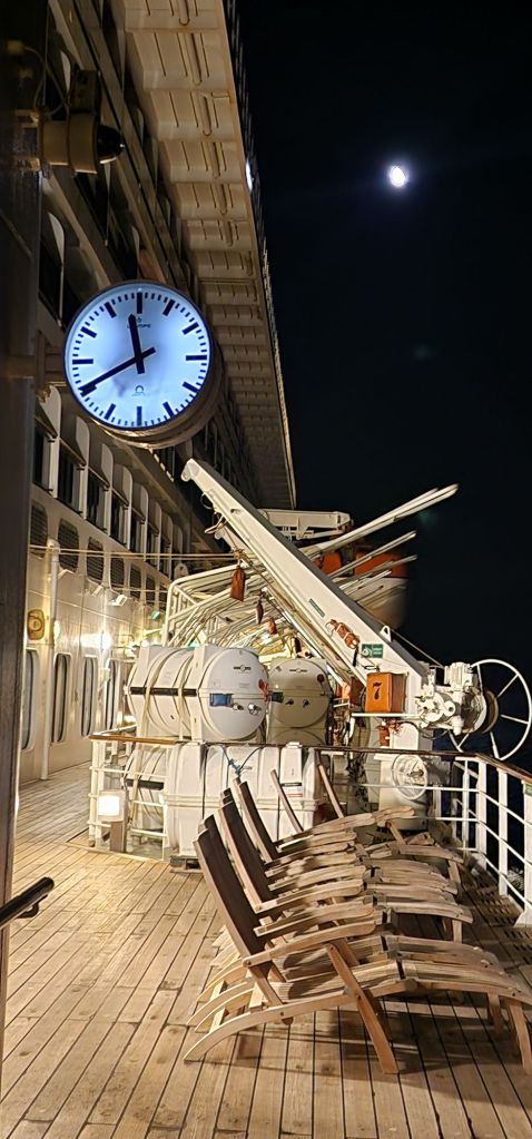 When eventually I was settled in my cabin, I received a letter-card welcoming me as a “first- time Cunard guest!” That explains the confusion at the check-in where I was told that I was not entitled to priority booking. Seemingly, I have slipped off Cunard’s radar! No bunch of flowers or chocolates for me this time!