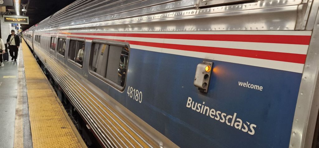 Don’t get me wrong, i love trains and can be very forgiving. However, i have to agree with a lady and her partner with whom I chatted with over afternoon tea yesterday (27/8/24) that, in reality, The Maple Leaf 13 hour journey between New York and Toronto is pretty dire! One locomotive hauls a motley collection of five (perhaps) 40 year old Amfleet (I think that’s what they are) carriages in much need of a refurb, particularly on the exterior. One such train runs daily in each direction. The lady was (fairly justifiably) disappointed that there was no dining car for the day-long journey. I, on the other hand, am grateful that hot snacks are available and that the service runs at all, even if now, it’s unlikely I shall embark on this journey again. In recent times, when I have travelled on this service, the train has been sold out. Most trains are made up of short consists to ensure this. My “final” experience of the Maple Leaf was the train running to time, the cafe closed just when I needed it and the exterior disappointingy grubby. Inside, it was comfortable enough, especially in the slightly more spacious business class, where hot and cold non alcoholic drinks are complimentary. That’s when the café is open! I certainly don’t blame the person who runs the café. We are all entitled to a break during a shift. Also, the rest rooms (loos) can become whiffy in 13 hours! What I do like is that it’s a day-time journey although, although partly because of crossing the U.S. and Canada border, the train and its passengers need to be inspected with a fine tooth comb.