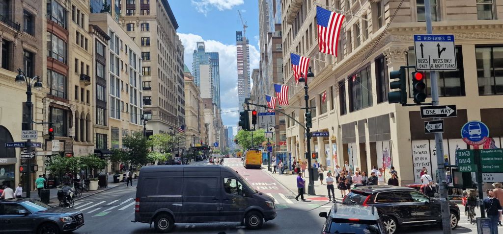 For one last time, I was wheeling my suitacses along platforms, up ramps, in lifts etc to exit a railway station, the magnificent Moynihan Train Hall no less! The building was once the main post office of New York City and has been superbly repurposed as the heart of Penn Station, partially compensating for the loss of the fabulous original Penn Station demolished many years ago.