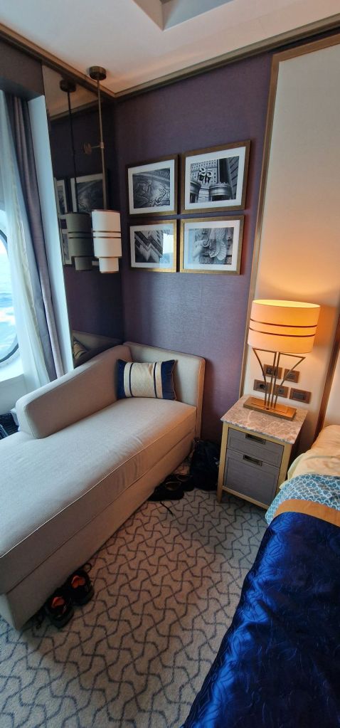 Queen Mary 2’s staterooms and suites are on decks 2,3,4,5,6,8,9,10,11,12, and 13. Single occupancy staterooms were added to decks 2 and 3, inside and Club balcony staterooms on deck 13 during the 2016 Remastering. Another change in this 2016 refit was the removal of the internal two glass elevators from the Grand Lobby, which took guests from deck 2 to the Kings Court Buffet on deck 7. For a while, I missed this useful facility.