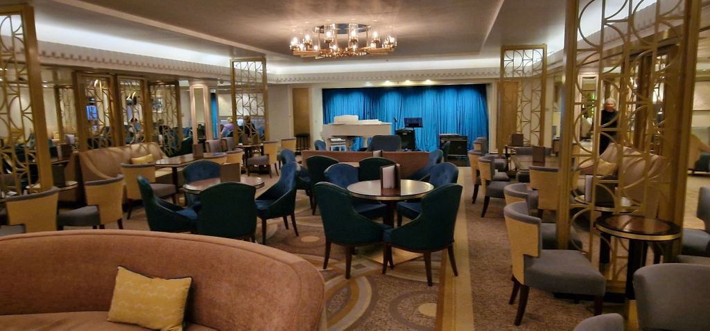Behind the Kings Court are the Princess and Queens Grill Longe and Restaurants. While I have no experience of the Grills or Britannia Club, I imagine that these higher grades are probably worth the “splurge” if money is of no object. I may just try a three day trip in Queens Grill, just to “tick the box.” I did something like that on QE2 years ago! What a treat! But this crossing was already a treat.
