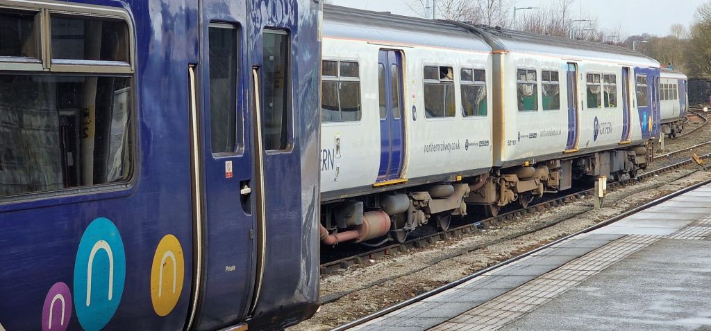 The Buxton line from Hazel Grove continues to be serviced by late 1980s Class 150 and 156 D.M.Us. (two car diesel trains which can be coupled into four car sets, each car housing its own diesel engine undreneath the carriage). Even they have been retrofitted with digital customer information screens and A.I. station announcements in an unconvincing northern accent! The signalling remains mechanical semaphore, offering Absolute Block Working, one train in section at a time.