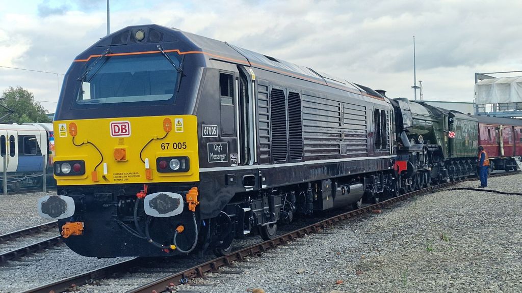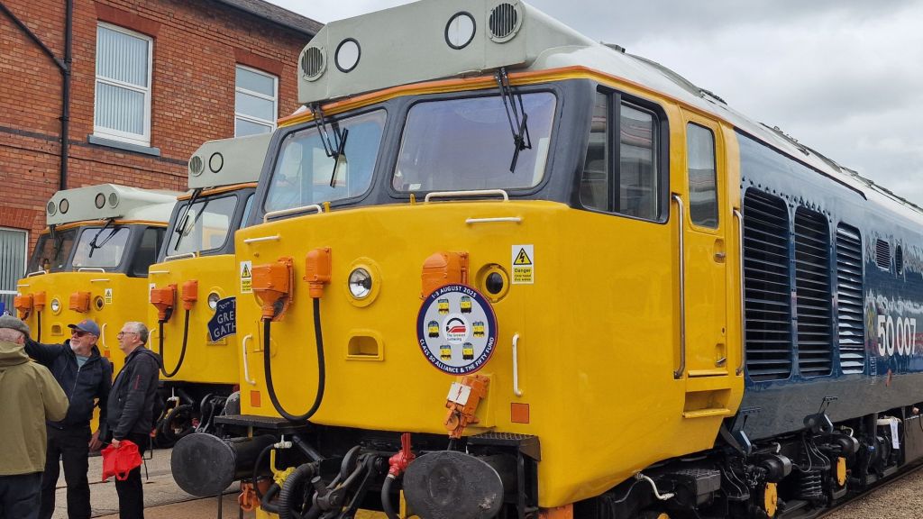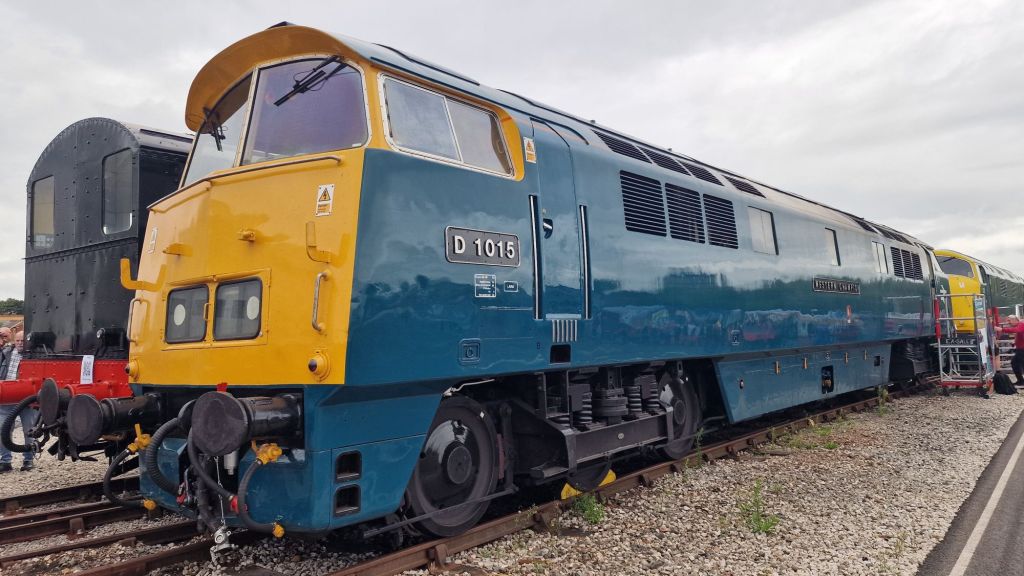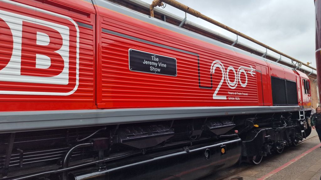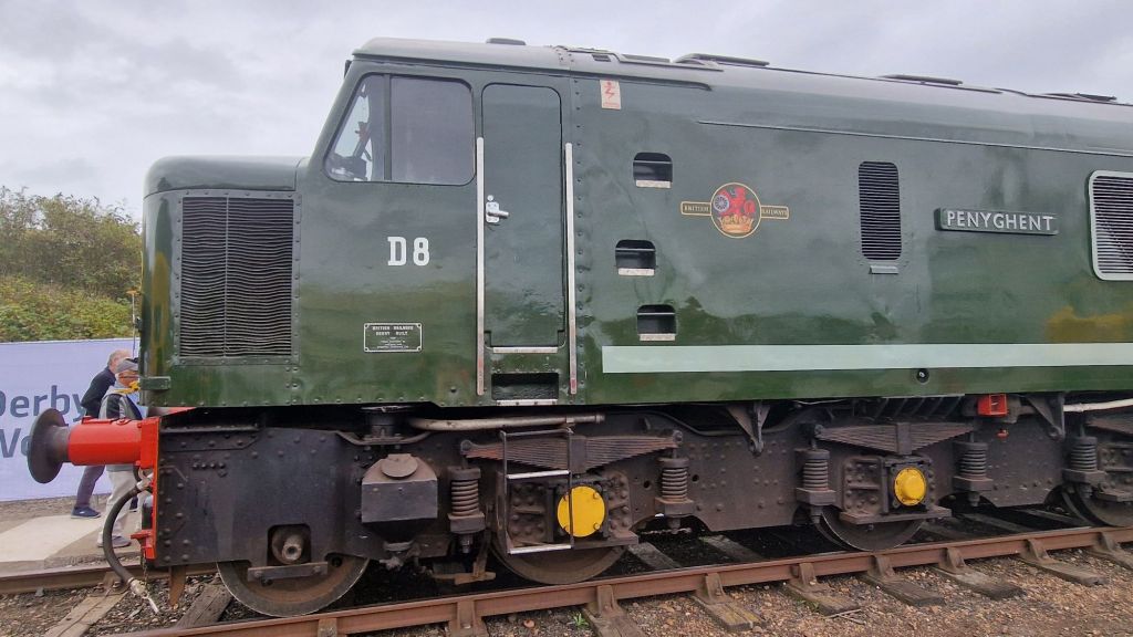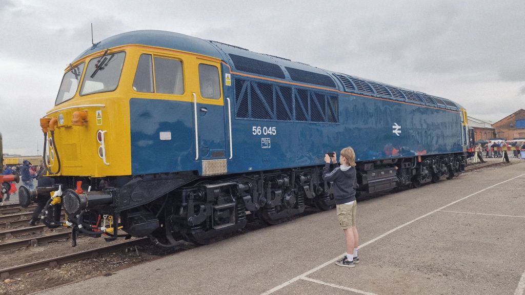 I missed a trick! My Greatest Gathering experience spanned three days. There was the railtour from Crewe on Thursday afternoon, allowing some couple of hours to wander around the not yet fully set up exhibition, though that wasn’t obvious at the time. Then there was the main day, August 1st, for which I had an ordinary ticket. Unexpectedly, I had the opportunity to return the following day, which was kind of a business trip, for which Clive very kindly provided transport in both directions. Because of engineering works, there was no practical public transport alternative, not even by bus. None that I could ascertain anyway. What I should have anticipated and made time to witness was the spectacular dispersal of the exhibits over the next few days. Looking at some YouTube videos posted immediately after the event, Derby Station seemed to be the place for witnessing the numerous exhibits as they were dispatched to their next destination.