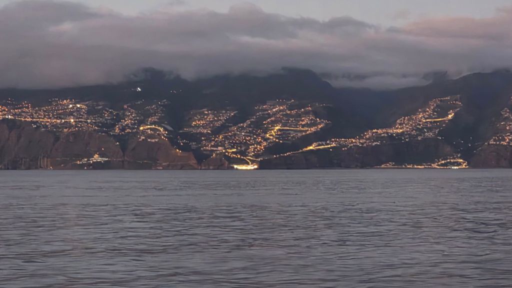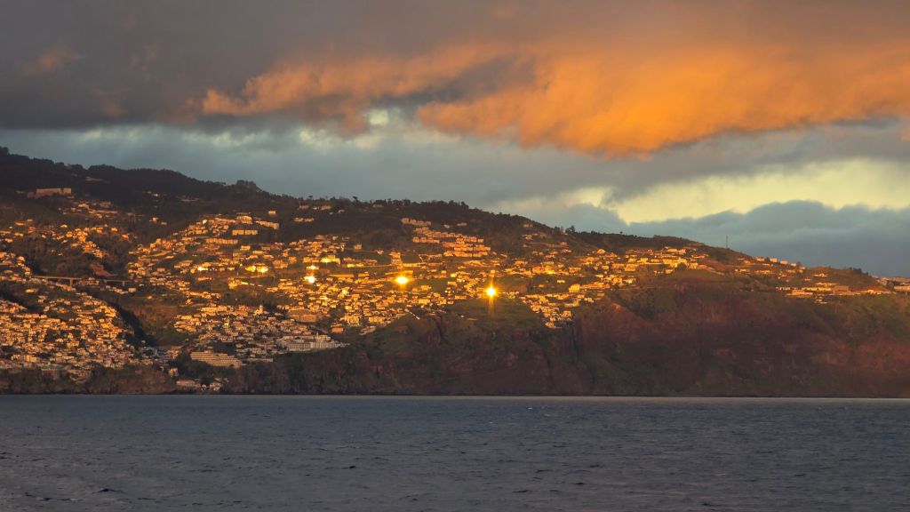 I have an abiding memory from Cruise No. 2 of November 1989. I was on my second QE2 voyage to the Canary Isles in November of that year. We were docked at Funchal, Madeira, just as today. I looked across at the backdrop of dramatic hillside and many thousands of buildings reaching almost to the summit of the mountains. As the sun set over the horizon, and Cunard’s Vistafjord (later Caronia) disappeared on its way to Barbados, the hills behind the harbour darkened as the lights in most of the buildings, brought the backdrop back to life, something as spectacular as Blackpool Illuminations.