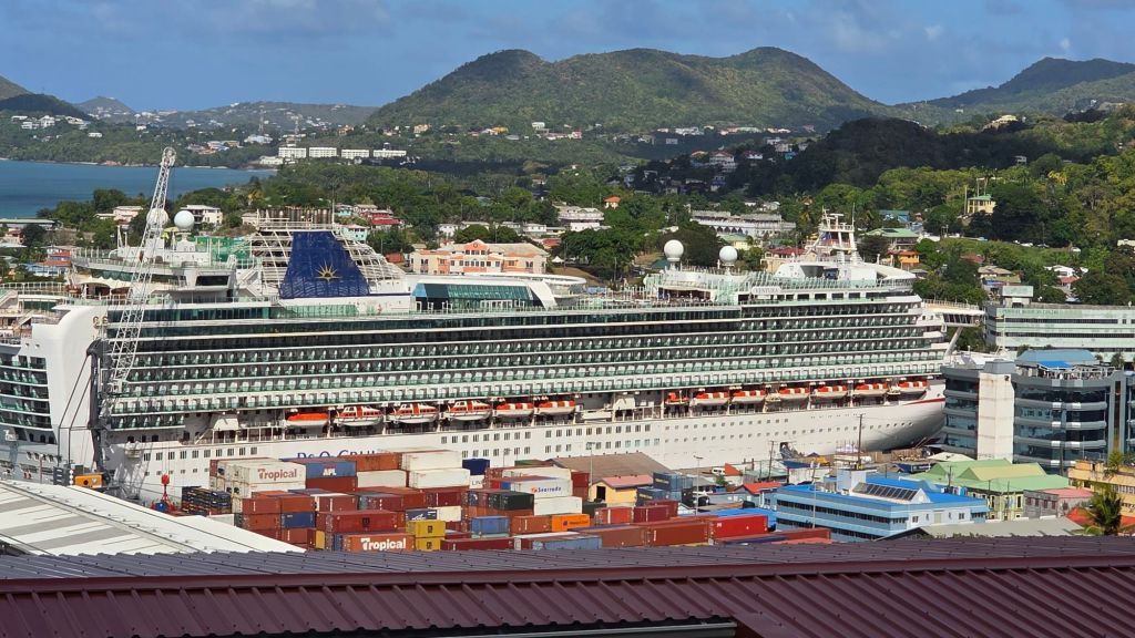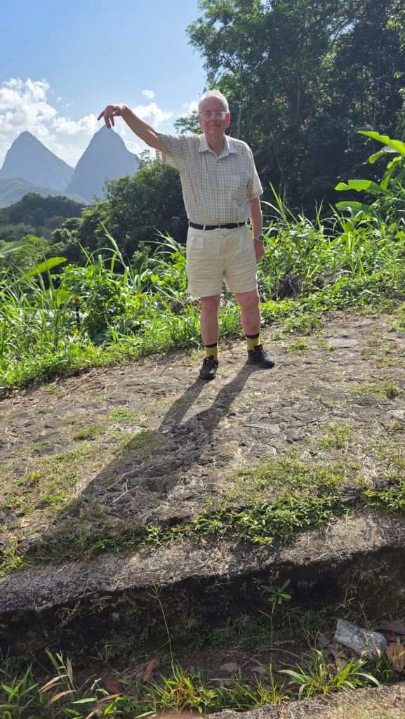 After negotiating Friday afternoon traffic in Castries (the Capital), we were soon climbing steeply until we stopped at the first viewing point, affording a magnificent uninterrupted sight of Queen Victoria, and the nearby P & O ship Ventura, slightly obscured.