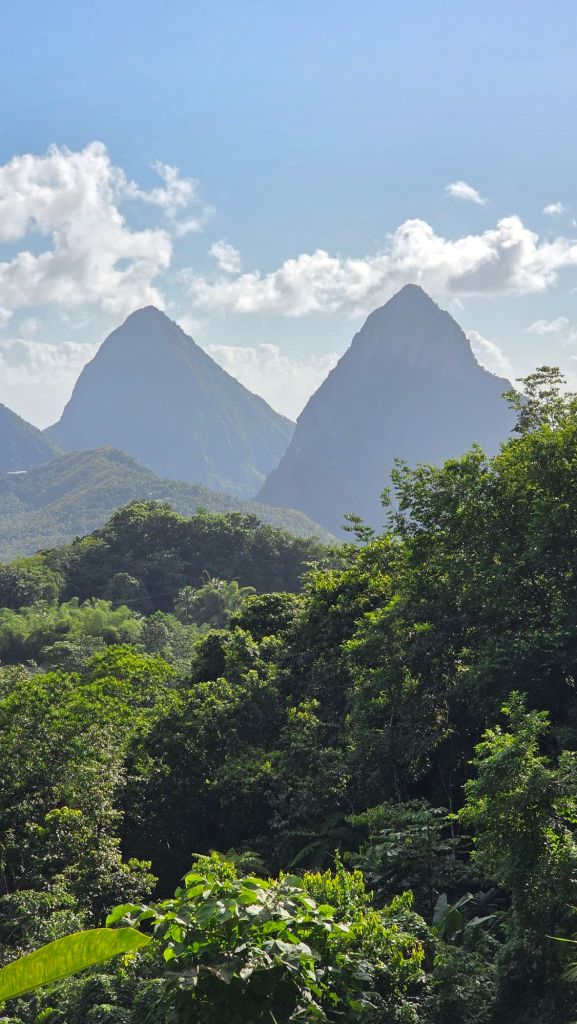 I decided to leave the Spa until later. It was too tempting to get into glorious mountains. After all fresco breakfast, I returned to my stateroom to shower, collect my things and see what excursions were on offer. I chose a taxi ride that would take me to where I could photograph the famous Pitons of St. Lucia. Cash only! I had to return to the ship, obtain cash from the Purser’s Desk, and then pay for the trip. For a second time this holiday, my phone was nowhere to be found. After looking in all the wrong places. it occurred to me that I might have left it at security check in. Phew! It was there. My blood pressure returned to normal!