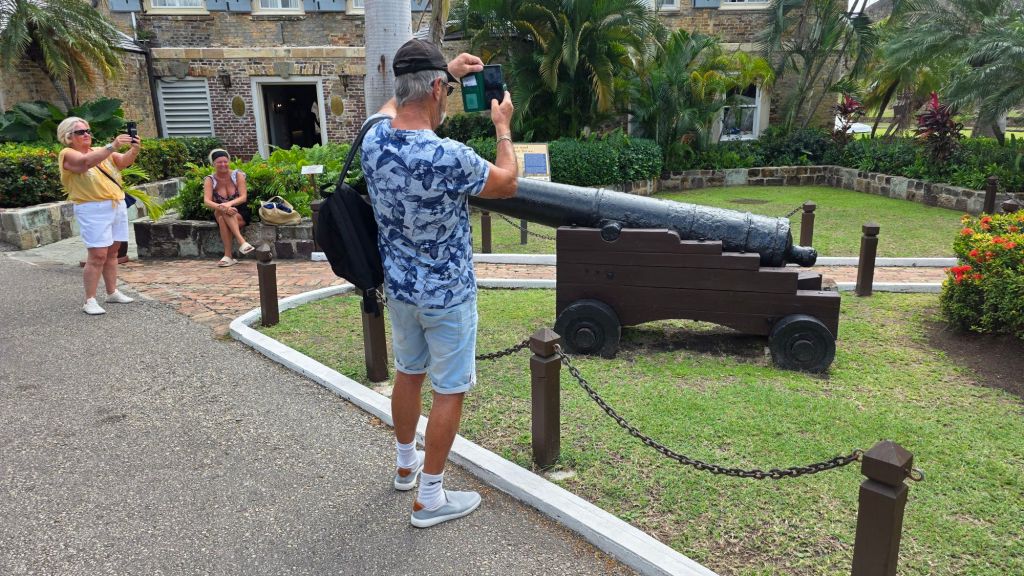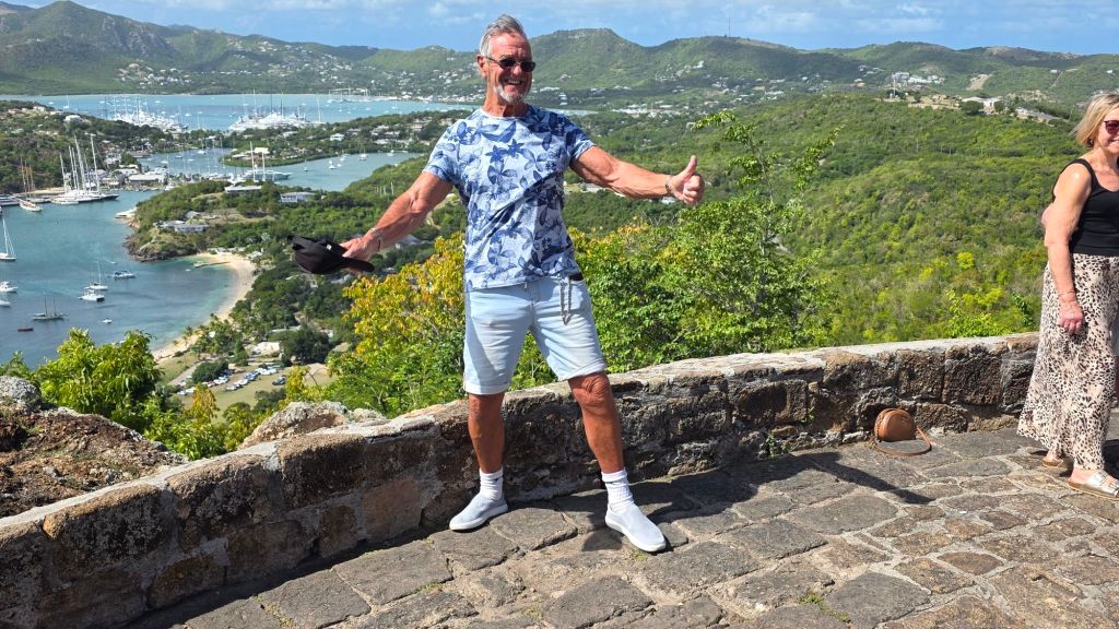 For whatever reason, after waking up at just after 3 am to use the bathroom, getting back to sleep was a challenge. I don’t think that I did. Nevertheless, after my normal diabetic friendly breakfast (including French toast!) I met up with table companions Jackie and Chris at 10.45. Everything was relaxed and wonderfully unhurried. Chris had suggested we make our own transport arrangements to two fascinating places to visit. Firstly, we drove the considerable distance to Nelson’s Dockyard, dating back to the 18th Century, a UNESCO World Heritage Site, complete with museum bars and eateries, superbly incorporated in the original buildings. To “do the place justice,” one needs around three hours, perhaps a little longer to enjoy the very pleasant catering facilities here. Private transport in both directions is plentiful and works out around $125 for solo occupancy of a mini bus for a three hour round trip, which is well worth the effort and the money. A $15 charge is made for non residents which includes entrance to both Nelson’s Dockyard and Shirley Heights. This is very well managed and not easy to “dodge.” Numerous souvenir outlets ply their trade.