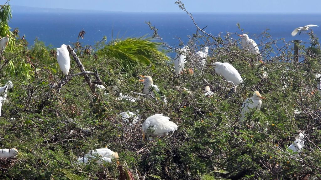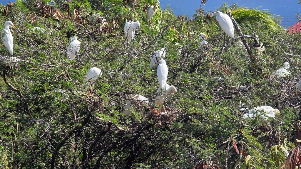 I’ve been here twice before but had always relied on ship’s shore excursions for the best sightseeing opportunities. I suddenly remembered the nest of white birds, egrets, that we would catch a split second glimpse of as we whizzed by on a tour bus. It was worth every extra dime to be given as much time as I wanted to photograph and video these birds in such great numbers. Apparently it’s the only such nest on the island.
