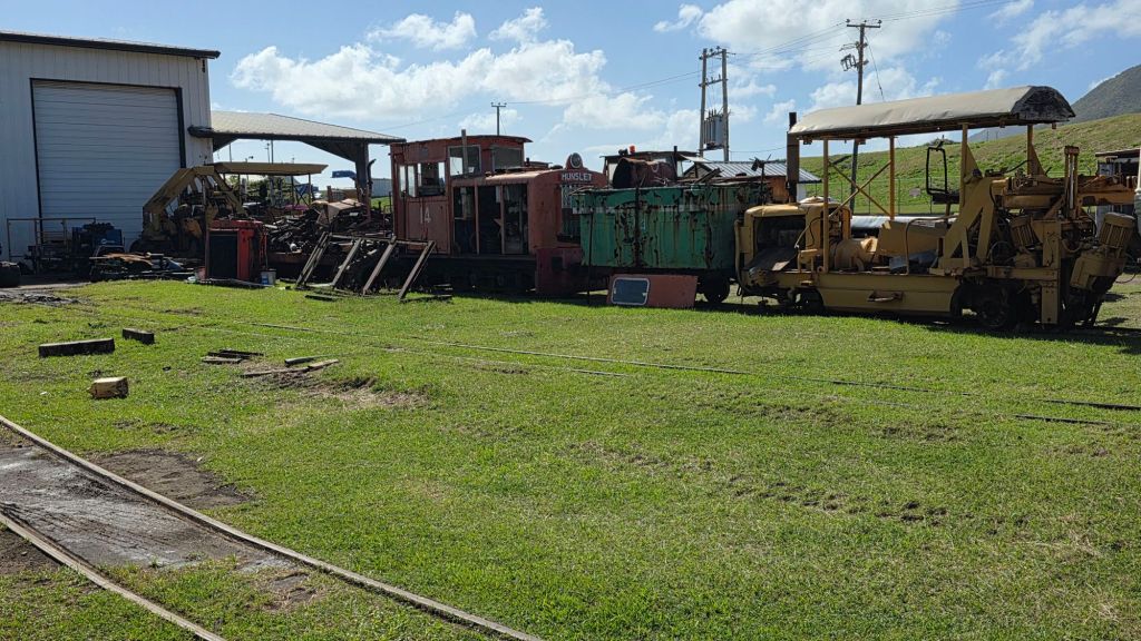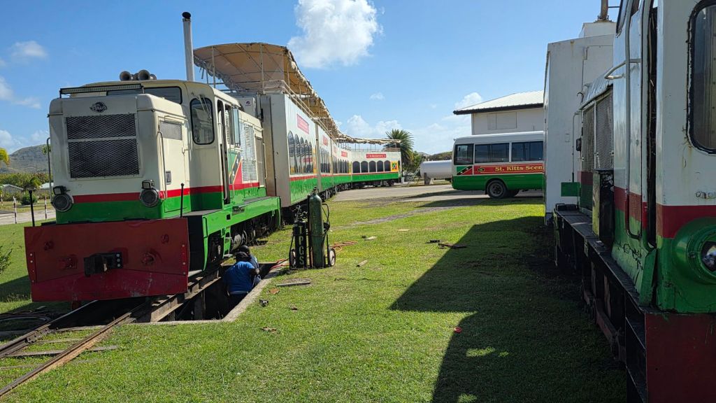 “Are we near the St. Kitts Railway”, I enquired. We were. He took me right to where a complete formation was either ready for, or just finished an excursion. I had “done” the train in 2022 and found it far too gimmicky to really want to ride it again. But to “loiter” probably where I shouldn’t have been. that was another matter! Nobody shouted at me to go! I saw all that I hoped for and more.