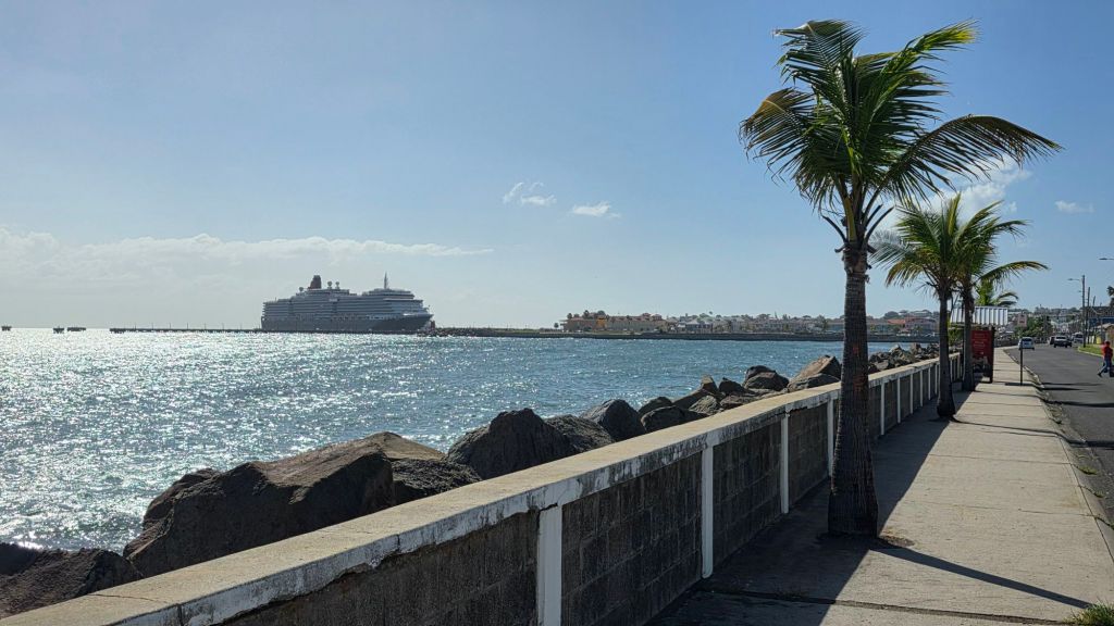 We are docked at the attractive port of Basseterre, St. Kitts and Nevis. It is hot with 30°C promised. I am seriously considering re-booking a similar voyage in 2028. The island is gorgeous and I shall disembark, have a local lunch and hopefully negotiate a tour of this lovely island.