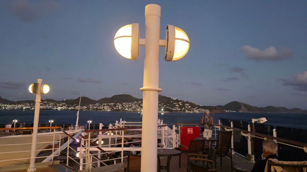 It’s now dark and I’m still chilling out in the warm refreshing breeze aft on Deck 10. Soon, I shall be listening to everyone’s account of their day over dinner.