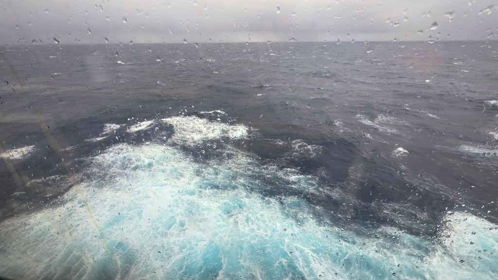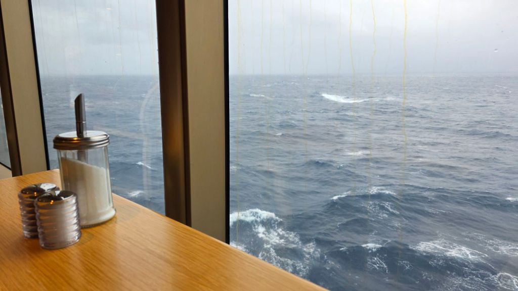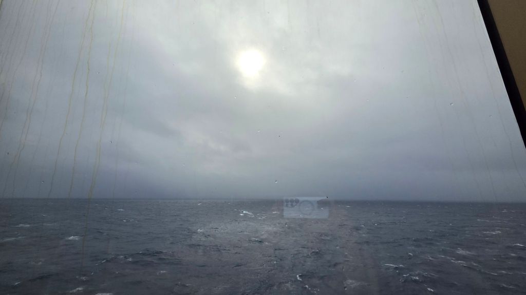 However, I understand this rarely works out as hoped. Winds and rain frequently batter the isles of the Azores (which I do hope that I get to visit eventually). The grey sea and colourless sky is still mesmerising. Seeing this from the comfort of a decent cruise ship is a rare privilege. (It might not feel like it after a day or two!)